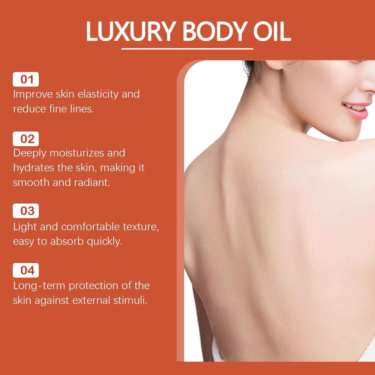 Quick Absorption & Non-greasy: Our advanced body oil formula transforms upon contact – absorbing 50% faster than conventional oils. The molecular weight optimized blend of jojoba and sweet almond oils penetrates within 20 seconds, it absorbs quickly, so your skin feels silky smooth without any greasy residue.