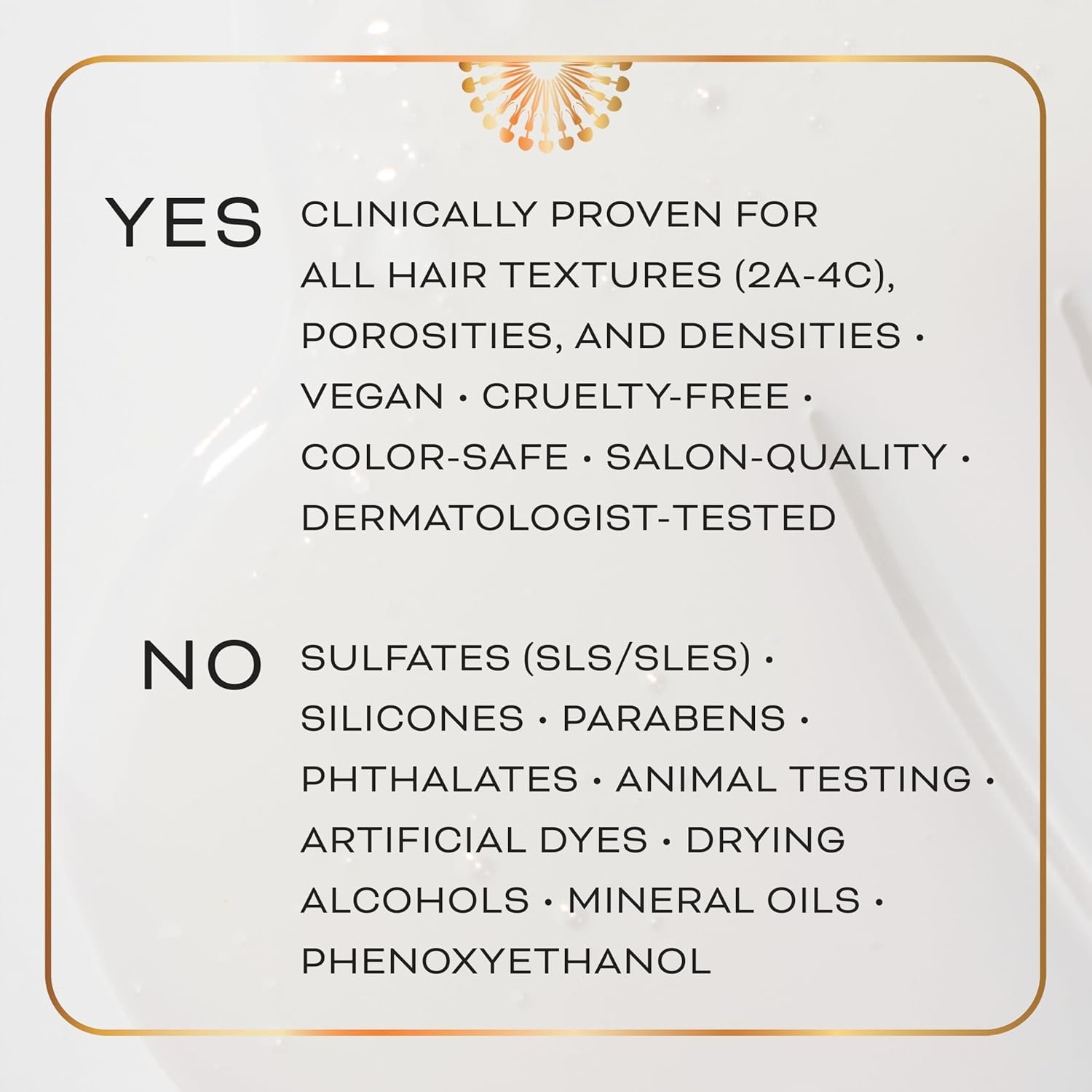 CLEAN BEAUTY STANDARDS: We are salon-quality, clean, vegan, cruelty-free, dermatologist-tested, and hypoallergenic, with NO Sulfates (SLS/SLES), silicones, parabens, phthalates, animal testing, artificial dyes, drying alcohols, mineral oils, or phenoxyethanol