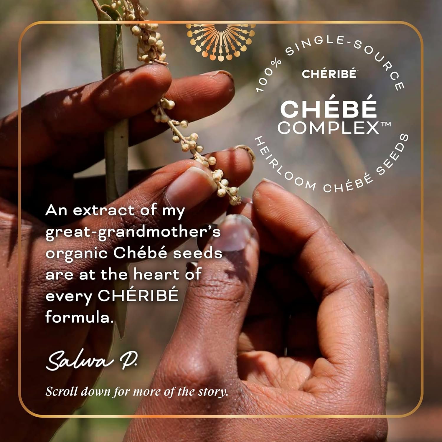 100% NATURAL CHEBE COMPLEX + GREEN TEA: Patented extract of heirloom Chebe seeds grown on our regenerative Chebe farm in Chad, Central Africa + other 99.2% naturally derived ingredients