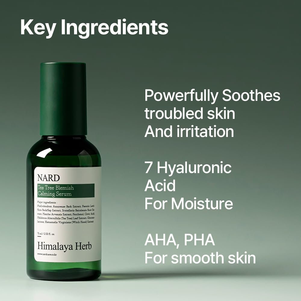 Tea Tree Blemish Soothing Serum 2.53 Fl. oz. / AHA & PHA Exfoliating Face Serum with Hyaluronic Acid, Panthenol & Witch Hazel for Calm and Hydrated Skin | ⭐ Flexiology.Store Recommended